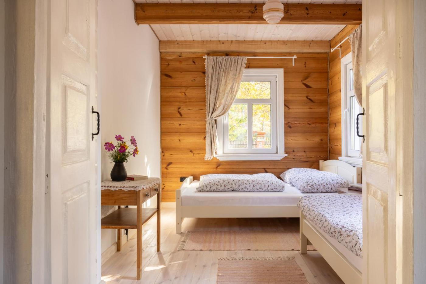 Dom z 2 sypialniami. Guests will have a special experience as the holiday home features a sauna. The holiday homes kitchen, which features kitchenware, is available for cooking and storing food. The holiday home has parquet floors and offers a private entrance, heating as well as a terrace with garden views. The unit has 4 beds. Dom wakacyjny - 6 osobowy. Powierzchnia pokoju ok.: 95 mkw.