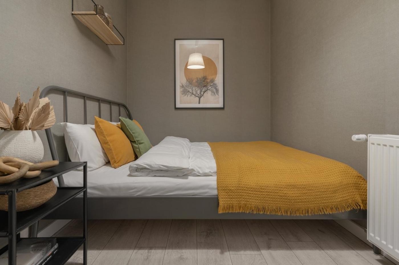 Apartament z 1 sypialnią. Apartament ten mieści salon, oddzielną sypialnię oraz łazienkę z prysznicem i bezpłatnym zestawem kosmetyków. Goście mogą przygotowywać posiłki w kuchni z płytą kuchenną, lodówką, zmywarką do naczyń i przyborami kuchennymi. W apartamencie zapewniono pralkę, zestaw do parzenia kawy i herbaty, część wypoczynkową oraz telewizor z płaskim ekranem i dostępem do kanałów kablowych. Z okien roztacza się widok na cichą ulicę. W tej opcji zakwaterowania zapewniono 2 łóżka. Apartament - 4 osobowy. Powierzchnia pokoju ok.: 18 mkw. ;