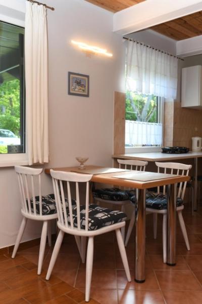 Dom z 2 sypialniami. This holiday homes standout feature is the fireplace. Guests will find a stovetop, a refrigerator, kitchenware and a microwave in the well-fitted kitchenette. The holiday home also has a barbecue. Featuring a terrace with garden views, this holiday home also offers a private entrance and a flat-screen TV with satellite channels. The unit offers 7 beds. Powierzchnia pokoju ok.: 20 mkw.
