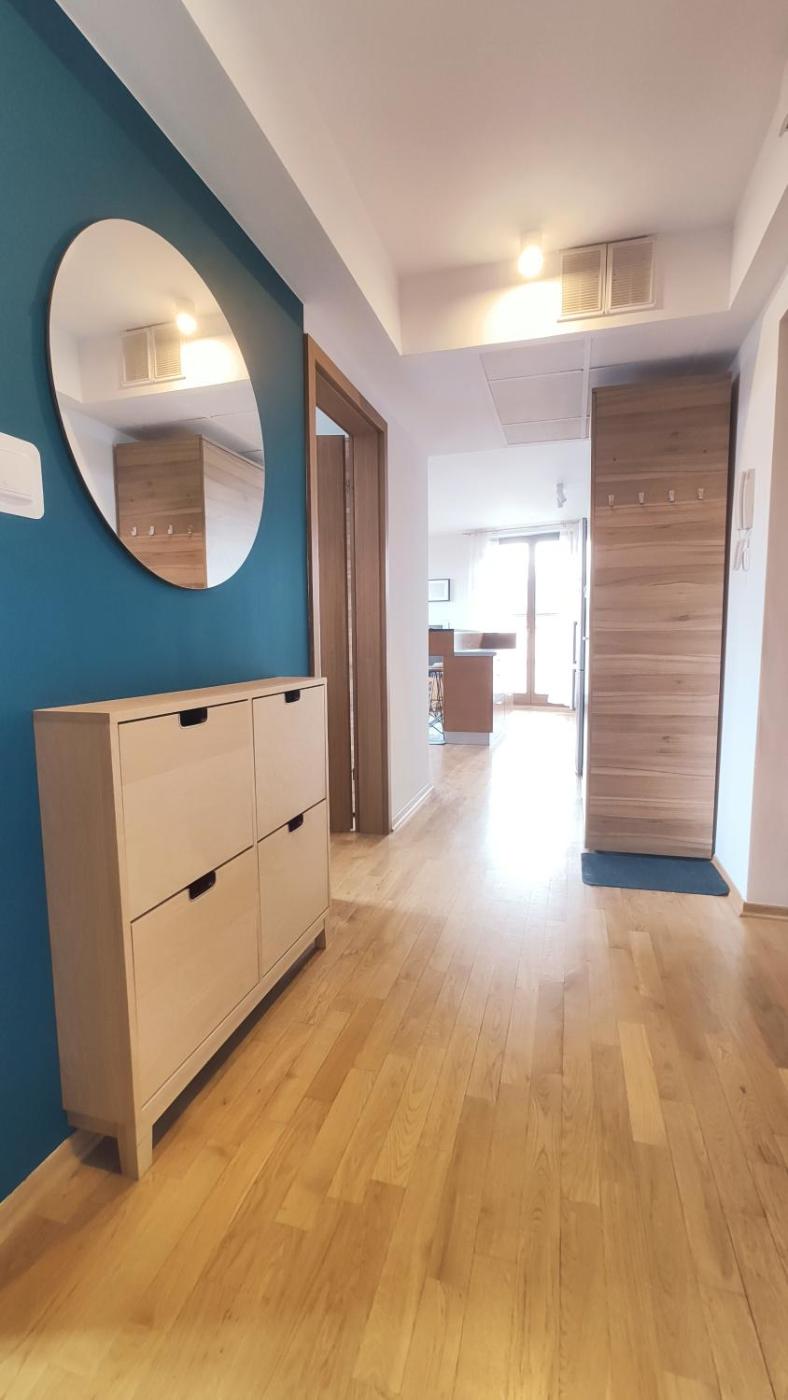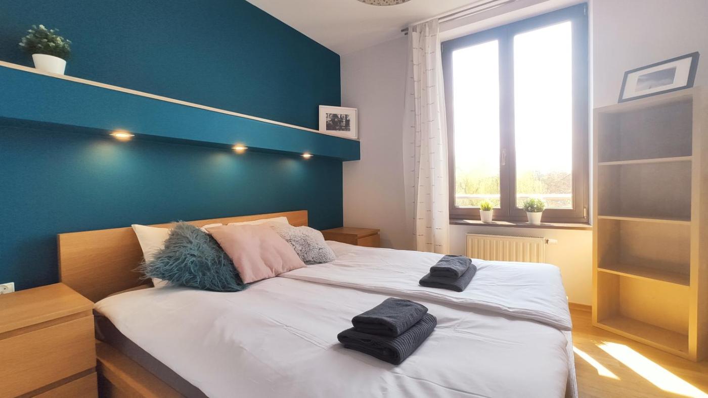 Apartament z 2 sypialniami. The well-equipped kitchen has a stovetop, a refrigerator, a dishwasher and kitchenware. The apartment offers a wardrobe, an electric kettle, heating, a flat-screen TV, as well as city views. The unit has 3 beds. Apartament - 5 osobowy. Powierzchnia pokoju ok.: 60 mkw.