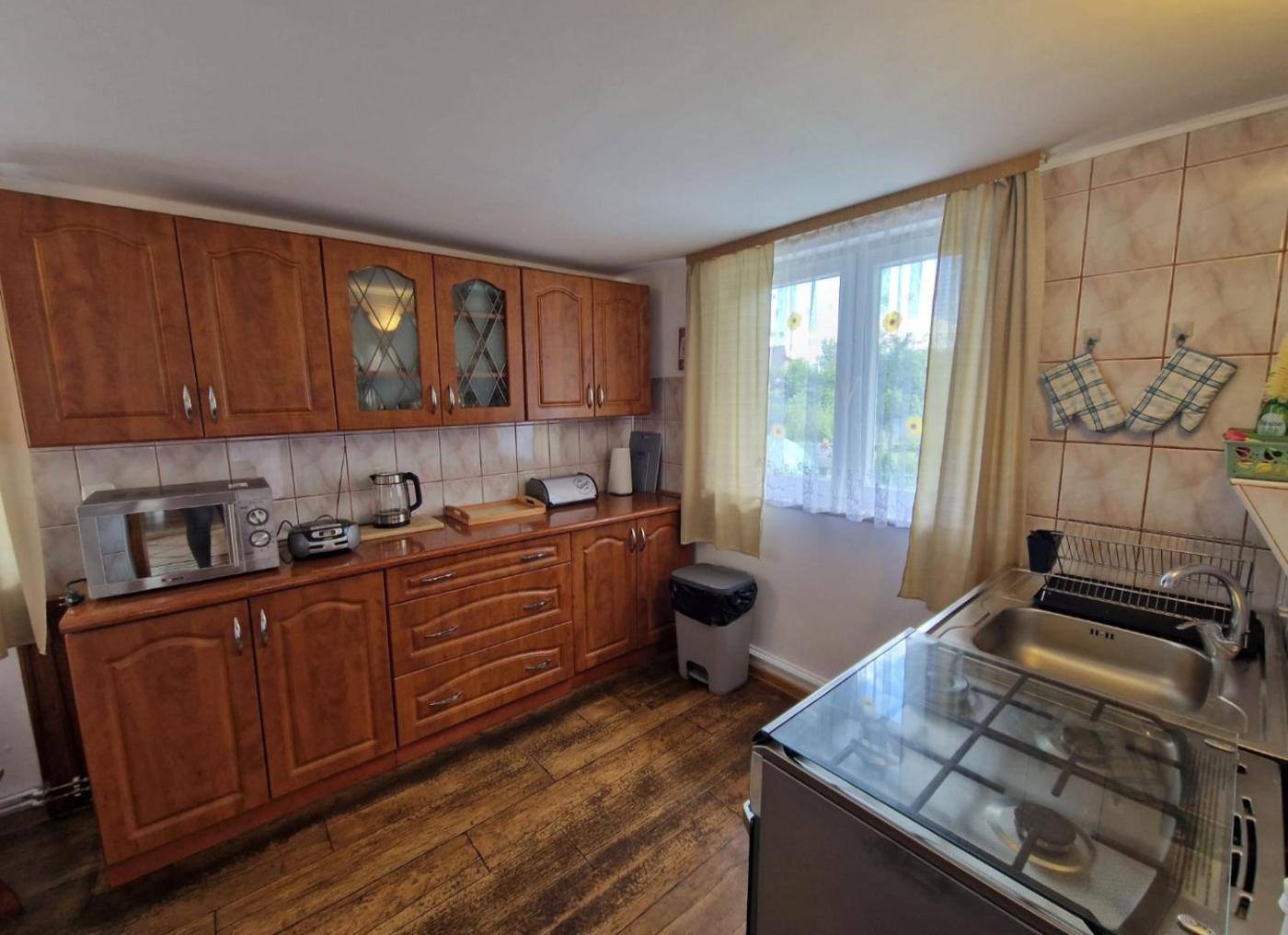 Pokój rodzinny. The family room offers a seating area and a wardrobe, as well as a private bathroom featuring a shower. The fully equipped kitchen features a refrigerator, kitchenware, an oven and a microwave. The family room provides a flat-screen TV with streaming services, a washing machine, a private entrance, a coffee machine as well as garden views. The unit offers 3 beds. Rodzinny - 5 osobowy. Powierzchnia pokoju ok.: 20 mkw. ;
