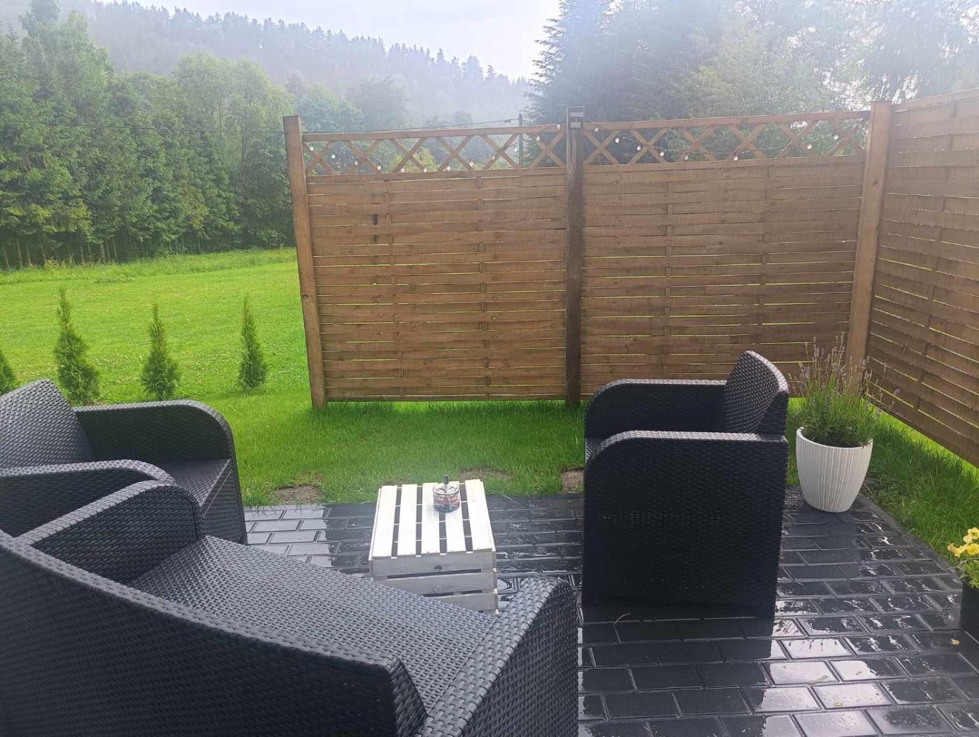 Dom z 2 sypialniami. The fireplace is a top feature of this holiday home. Guests will find a stovetop, a refrigerator, kitchenware and a microwave in the kitchen. The holiday home also includes a barbecue. The unit has a washing machine, garden views, a terrace and winechampagne is available for guests. The unit has 6 beds. Dom wakacyjny - 6 osobowy. Powierzchnia pokoju ok.: 70 mkw. ;